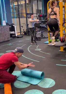 健身房里的尴尬时刻,帅哥一不留神就躺在了别人胯下