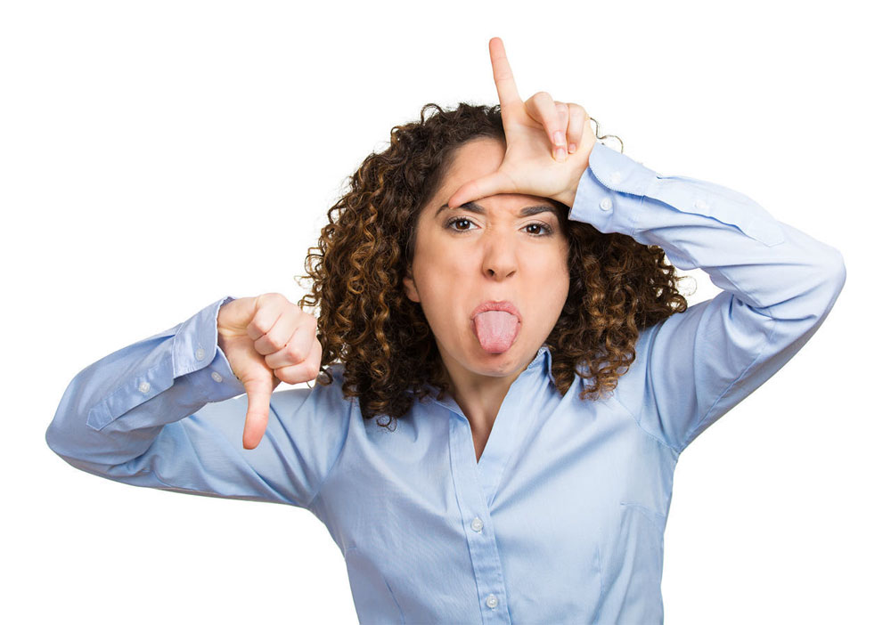 吐舌头做鄙视手势的女人