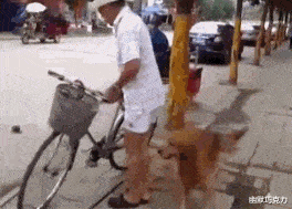 要出去玩喽,狗子熟练的跳上自行车后座