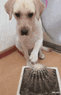 主人拿只假狗忽悠真狗,不听话就得揍