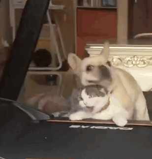 猫咪被狗狗欺负得不敢动弹,一脸懵逼