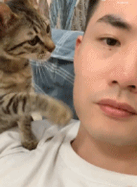 猫咪把主人的脸拽过来,温柔的撒个娇
