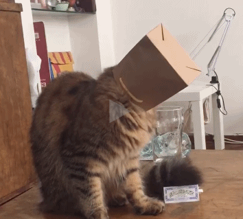 脑袋套上盒子摇摆的猫咪