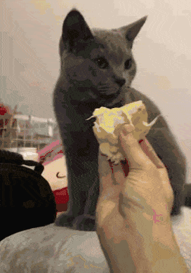 拿榴莲给猫咪闻一下,害得它扭头想吐了