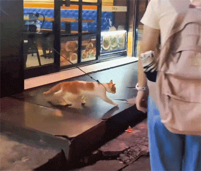 在店门口原地走路的猫咪,步伐如此的丝滑