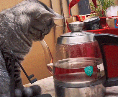 含着水壶嘴吸水玩的猫咪,自己能玩一整天