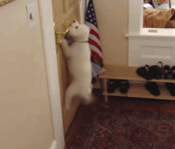 兴奋的狗狗在床上一个翻滚摔到床下去了