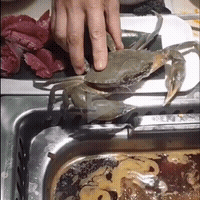 一只倔强的螃蟹,掉到热锅里还想努力爬上来