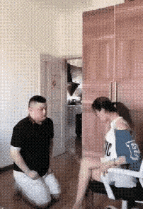 老婆以为老公抱抱想亲亲,其实是为了把脚踩的地方拖…