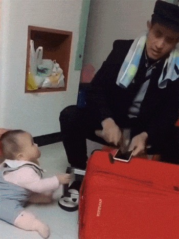 爸爸带娃的乐趣:喝口水与娃互喷,乐在其中