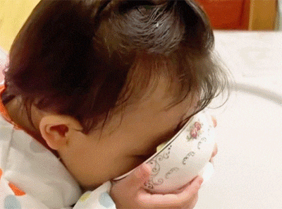 妈妈叫宝宝举高点喝粥,结果被坑了