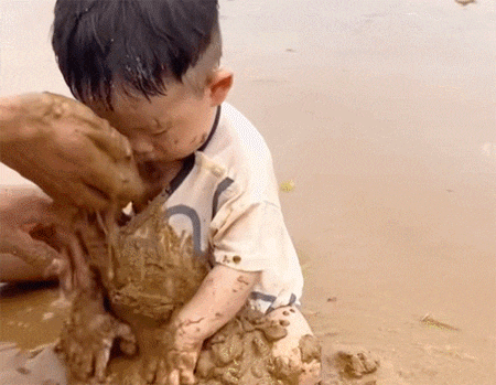 确定是亲生的才可以这样玩,宝宝喜欢玩泥巴就要这样玩