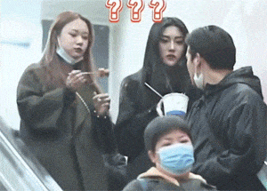帅哥坐扶梯回头问美女要烤串吃