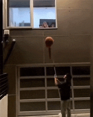 在楼下举起吓人头套到窗边,吓坏办公室里的男女