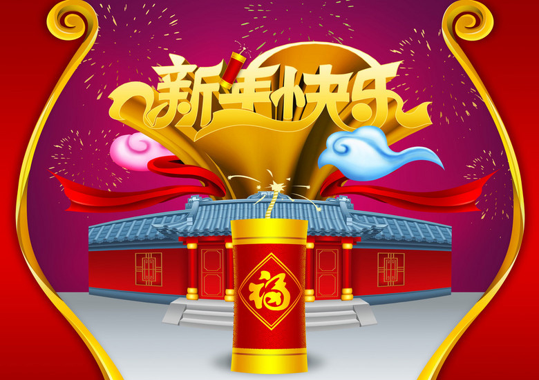 红色喜庆的新年快乐图片