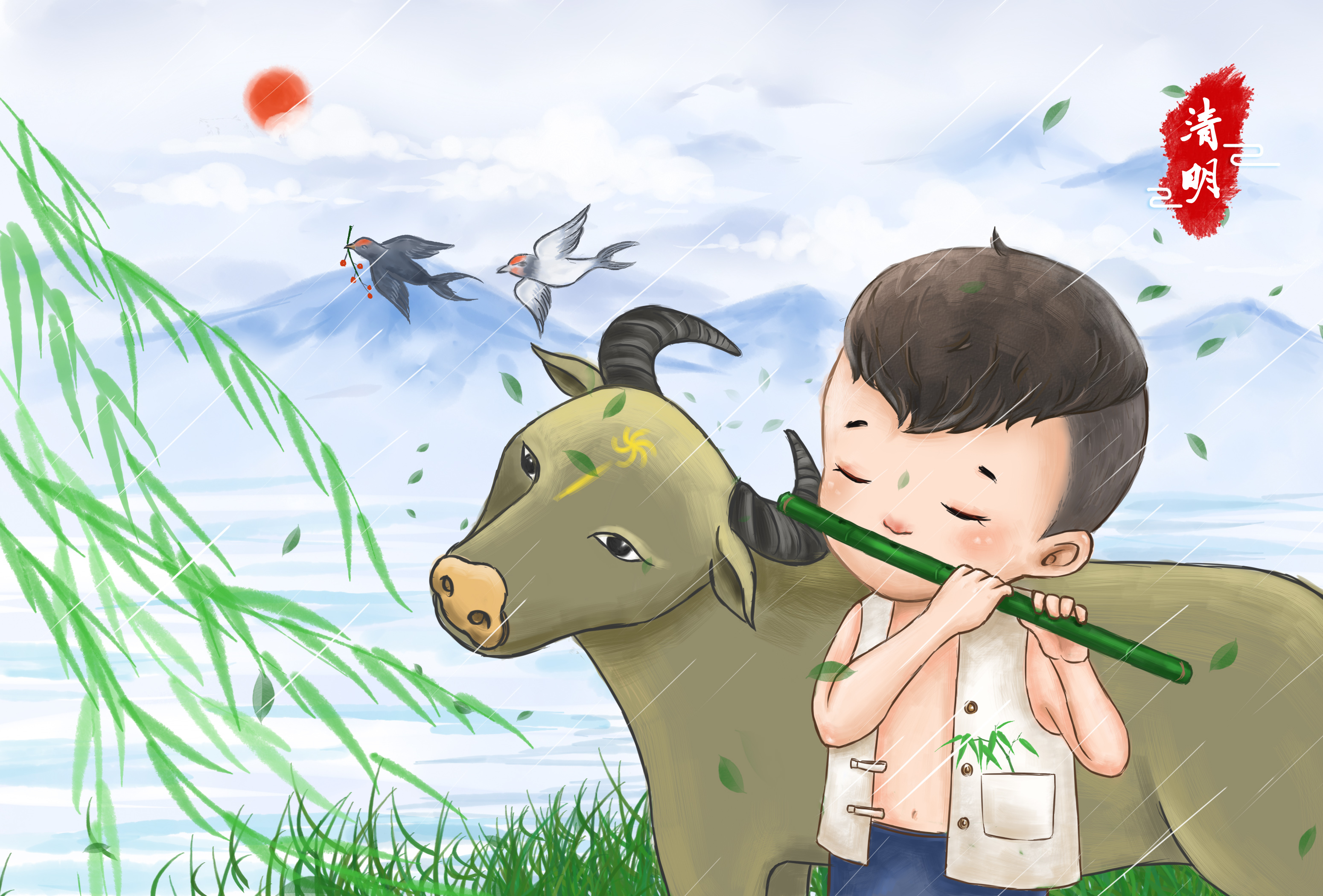 放牛娃清明吹笛子的伤感图片
