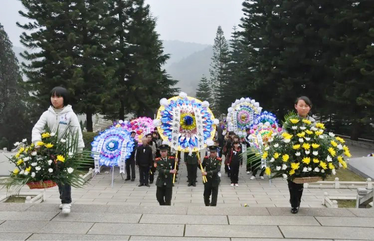 清明节组织学生为烈士敬献花圈,珍惜现在的生活