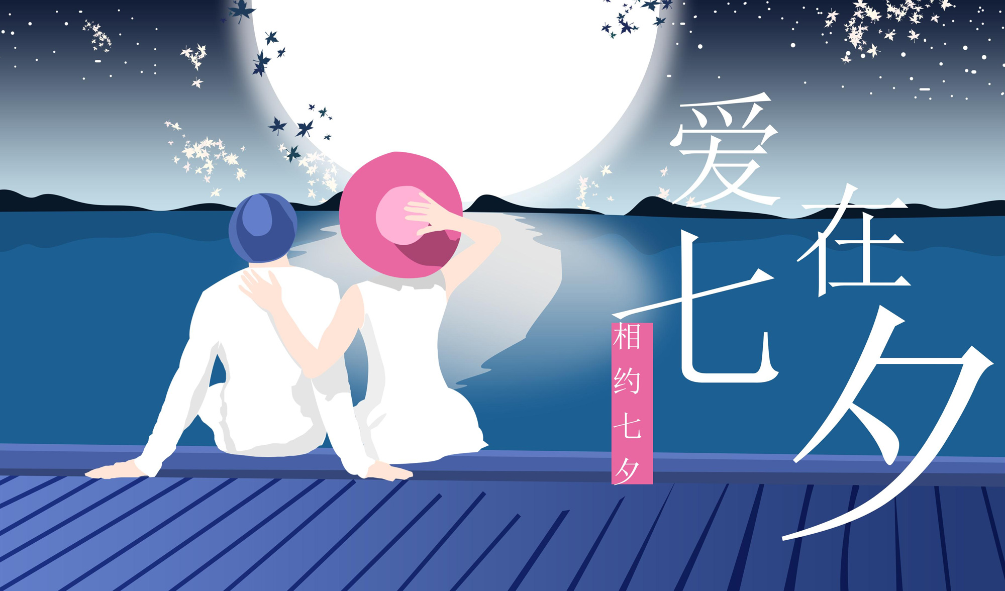 浪漫的七夕节主题插图