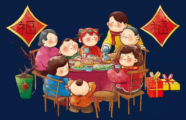 全家人一起过春节吃团年饭