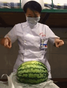 护士妹子给你们表演一个单指劈西瓜的功夫