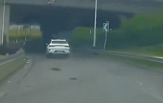 雨天高速路口未提前减速,结果造成车辆失控撞护栏