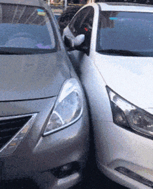 小车转弯撞到路边停着的三轮车,真是祸从天降