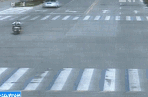 电动车撞红灯被撞散架了