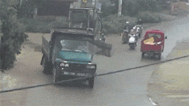 大货车车箱没关好刮倒路人