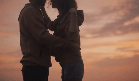 夕阳下热情拥抱的男女