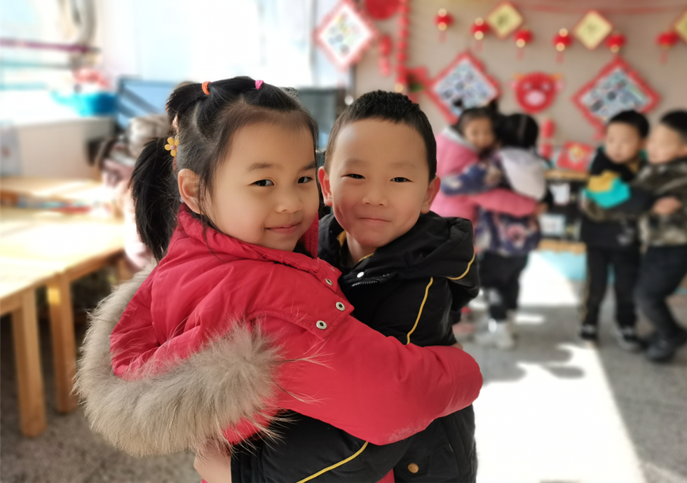 幼儿园男女小朋友的温暖拥抱