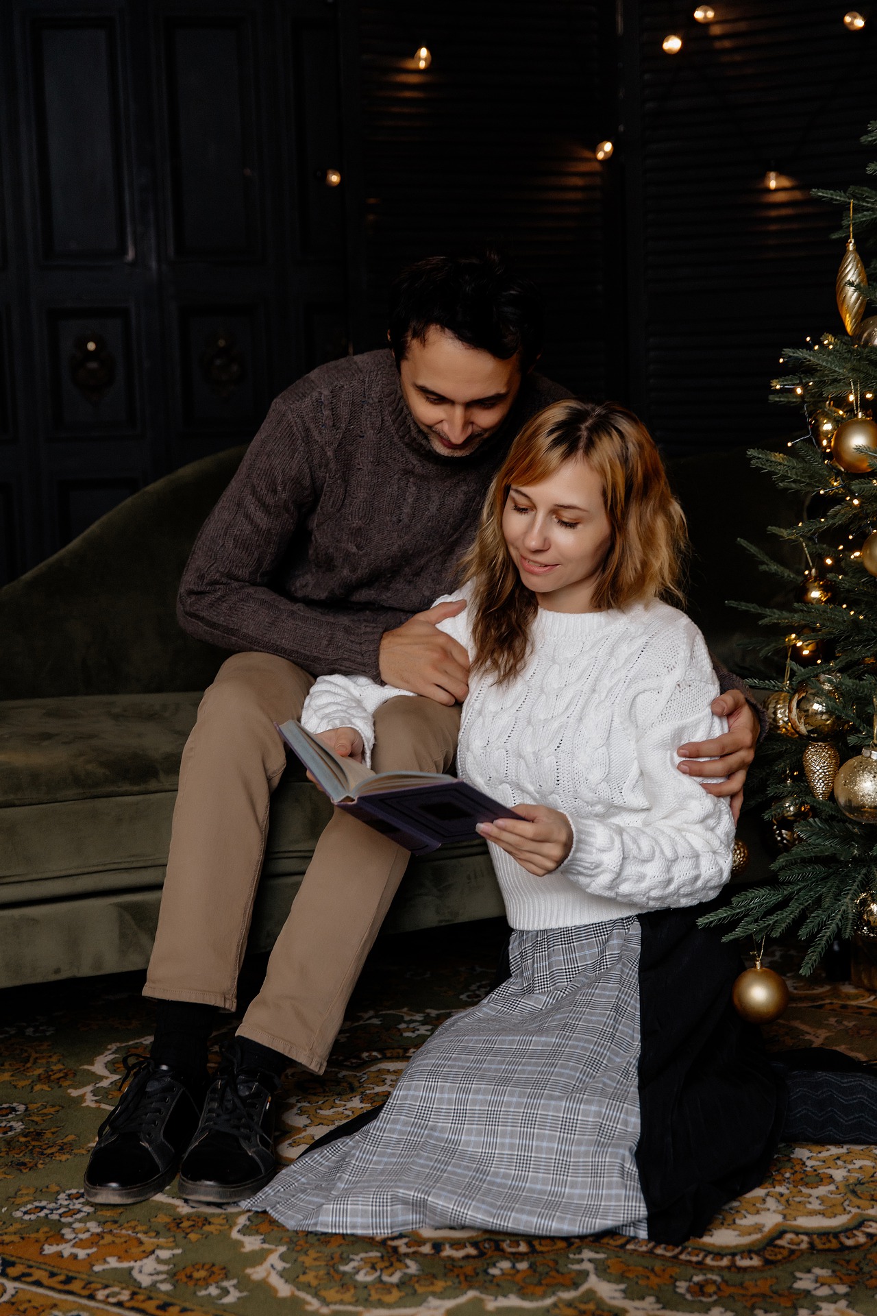 相依相偎一起看书的外国恋人