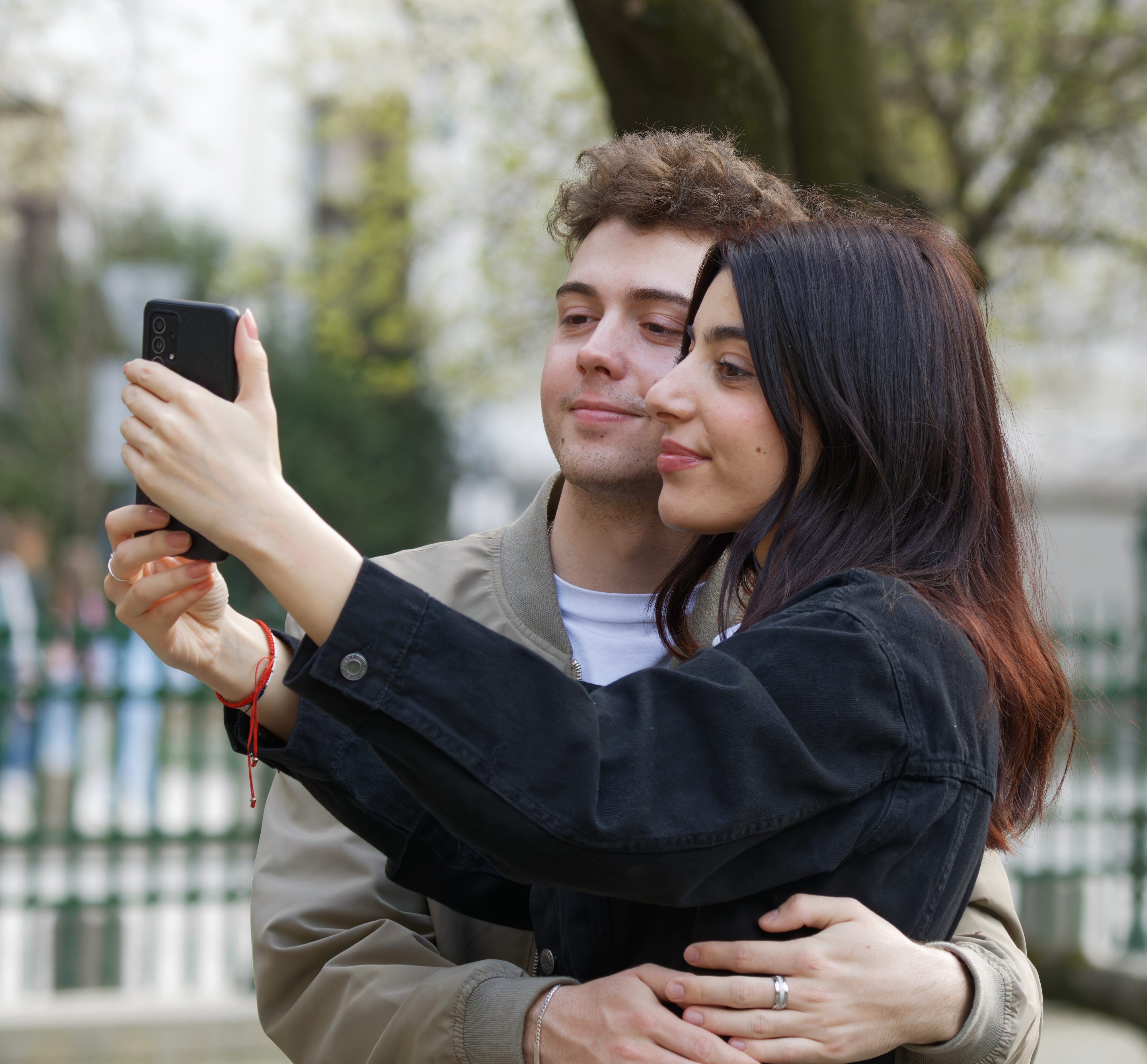 国外情侣在公园自拍留念