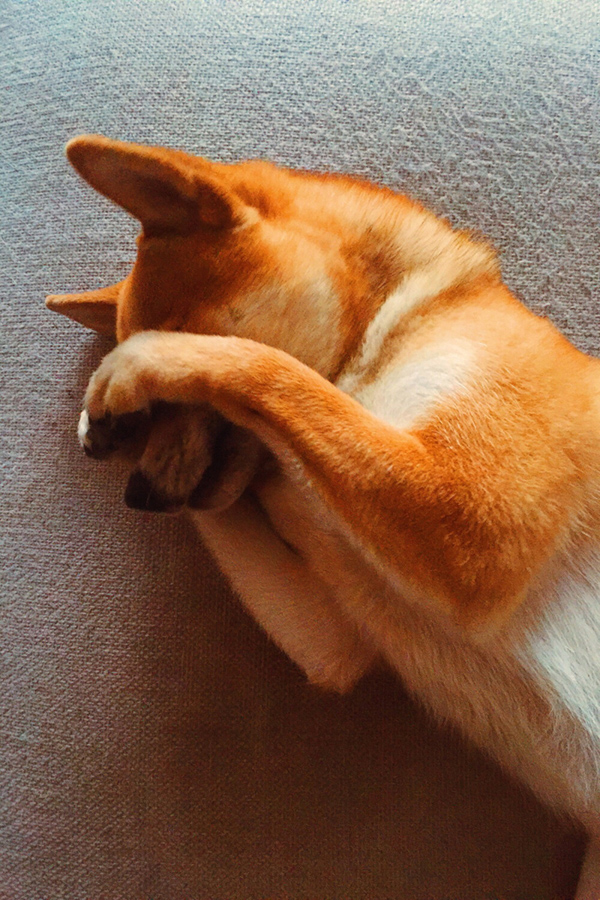 狗狗躺地上用爪子捂脸