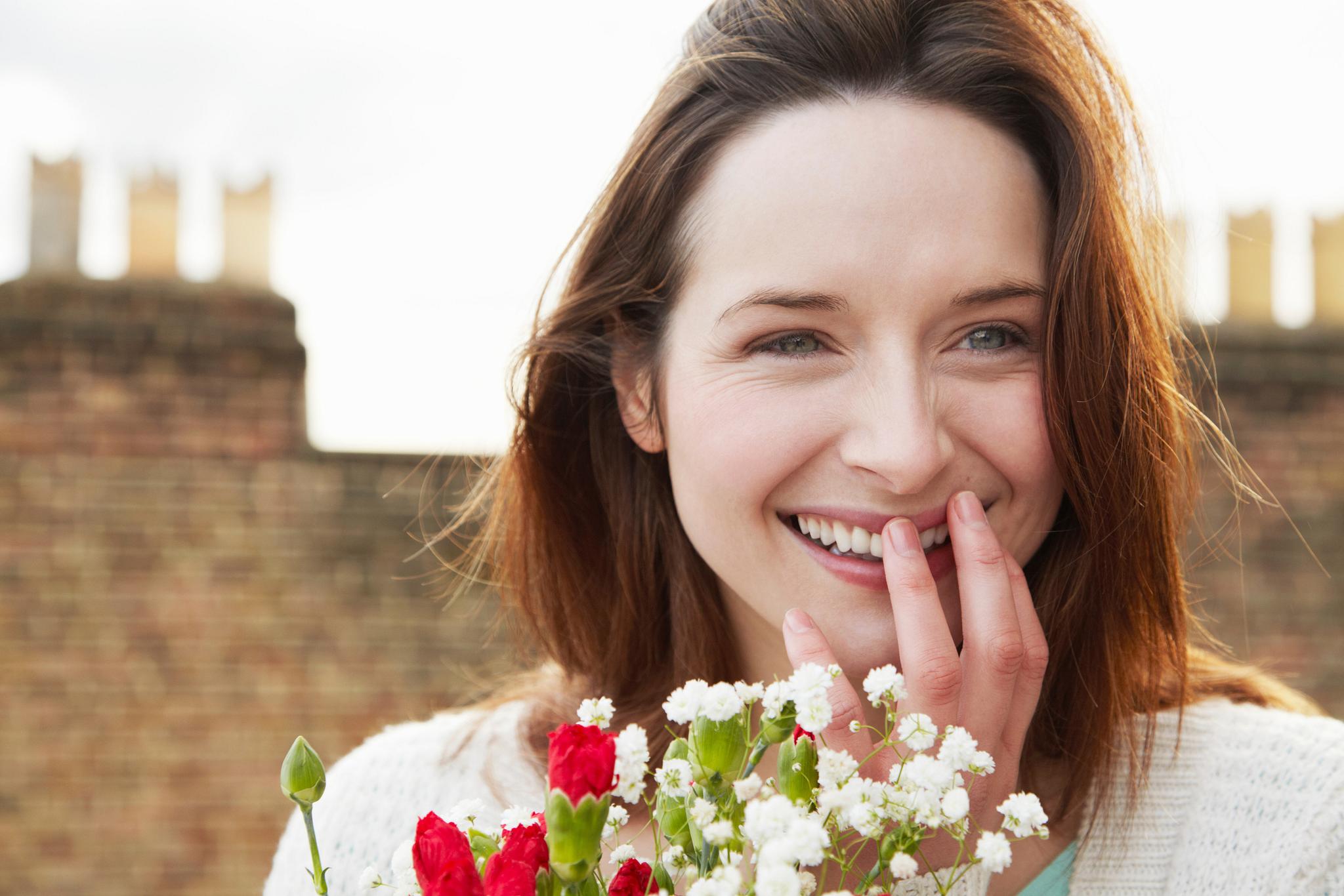 捂嘴微笑的外国女人