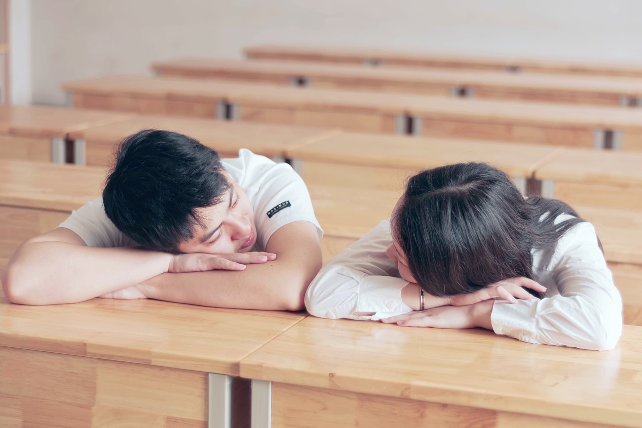 一起爬在桌子上睡觉的校园恋人图片