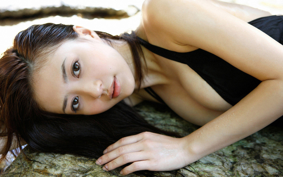 躺在石头上拍写真的小仙女
