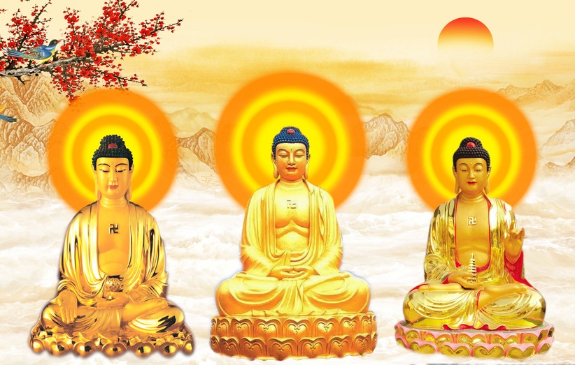 西方三圣图,南无阿弥陀佛