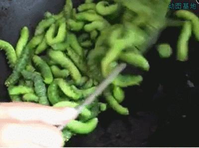 在锅里不停翻炒虫子的动态图片