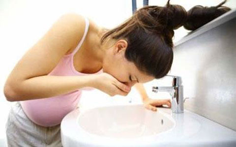 在洗手池边捂着嘴想吐的女人