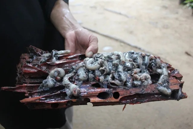 在山上抓到一堆小虫子
