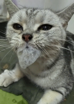嘴里吐泡泡的小猫咪