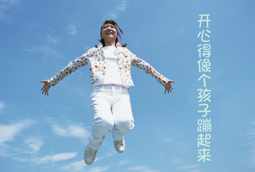开心得像个孩子蹦得老高