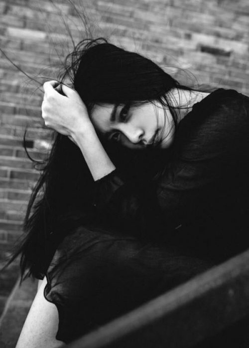 女生撩头发的黑白配图