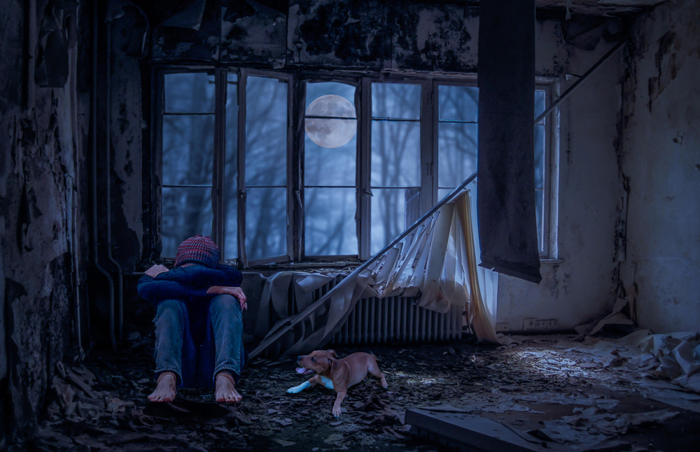 在房间里抱着自己哭一会,只有狗狗陪着我