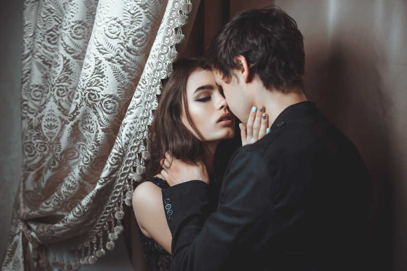 外国恋人甜蜜拥抱的黑白色图片