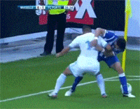 足球场上奔跑时被对手肘击,实在是太野蛮了