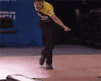保龄球选手的球没扔出去,自己却滑倒了,真是心塞啊