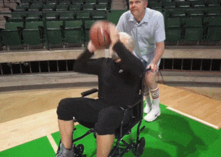 蓝球场上宝刀未老的大爷,先空翻再投篮进球