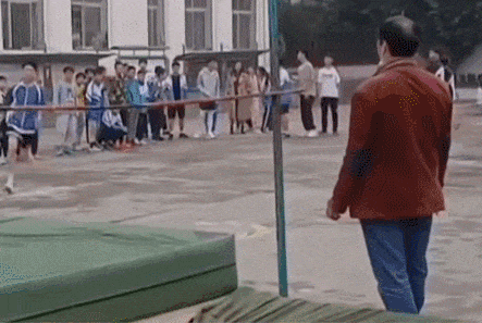 老师站在杆前,我怀疑跳高这位同学是故意报复