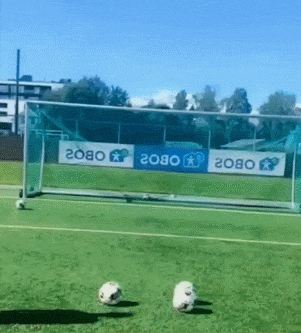 妹子大力踢足球,没想到球反弹回来砸到自己头上